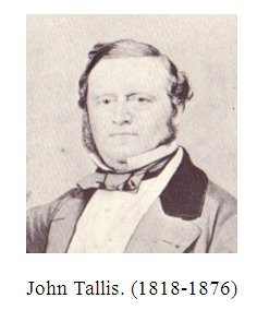 “Tallis was born in Stourbridge, Worcestershire in 1817, and moved to London in about 1841… A blue plaque commemorates his final residence at 233, New Cross Road. He died in 3 June 1876.”