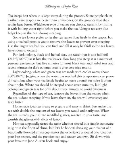 “In this delightful book Kim Wilson shares the secrets of tea drinking in Regency England, including a whole batch of recipes to help recreate some memorable occasions. . . . Kim Wilson has assembled a collection of anecdotes, quotations, verses and recipes, charmingly illustrated with largely contemporary engravings and line drawings, to provide an exhaustive and uplifting history of England’s favourite brew.” — Jane Austen’s Regency World Magazine