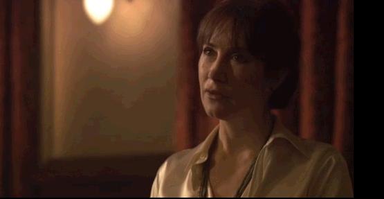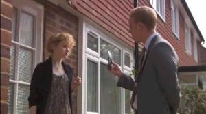 Dr. Laura Hobson (Clare Holman) at home, dealing with her friend's death