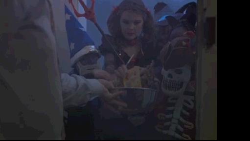 Tiny hobgoblins trick or treating at Lewis's door