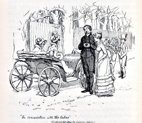 Observe Charlotte’s behavior somewhat later when Anne deB, Lady CdeB’s daughter, commands her driver to halt her phaeton at the parsonage’s garden gate. This non-event starts a rube goldberg chain of events in which Mr. Collins stops dead in his tracks to go rushing to the gate, Charlotte tosses aside her women’s work to chase after him and stand by his side, Sir William Lucas parks his carcass in the doorway to bask in all that reflected greatness, and Maria Lucas clomps noisily up the stairs to broadcast the GRAND EVENT and drag Lizzy to the window to SEE for herself!