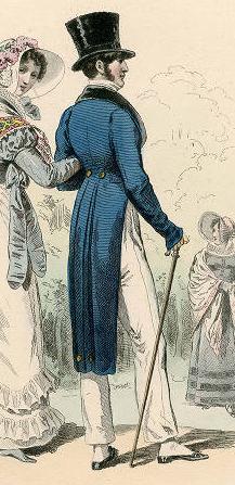Trousers were first worn by sailors and working men before 1800, and were adopted by the fashionable set around 1810.