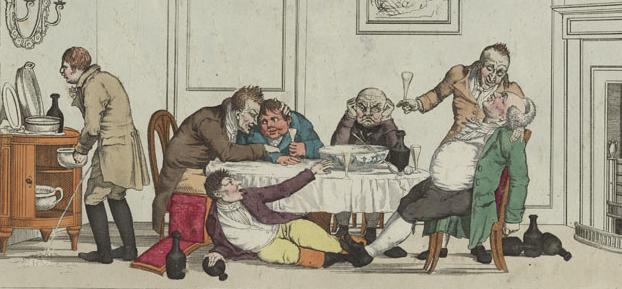 - Inconveniences of a Crowded Drawing Room, George Cruikshank, 1818. Wikimedia Commons image.