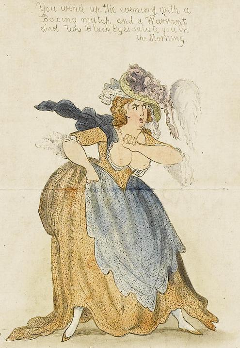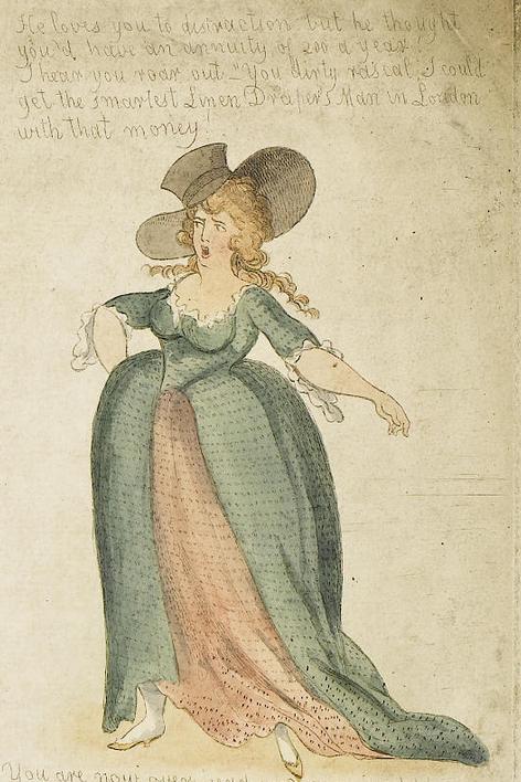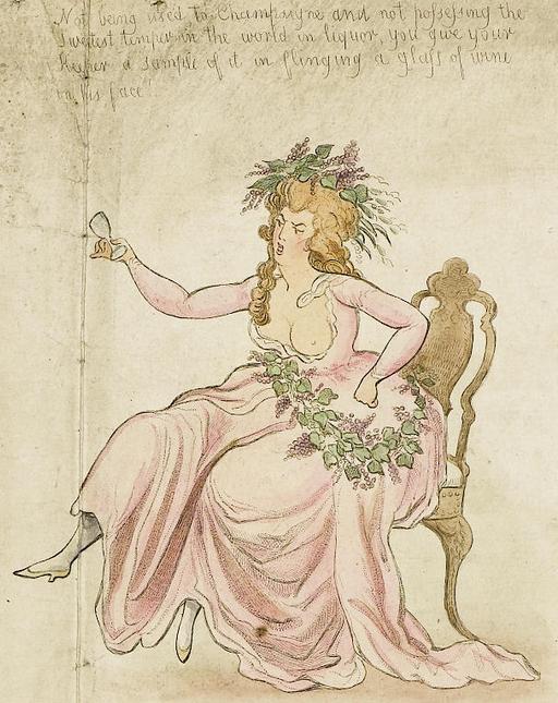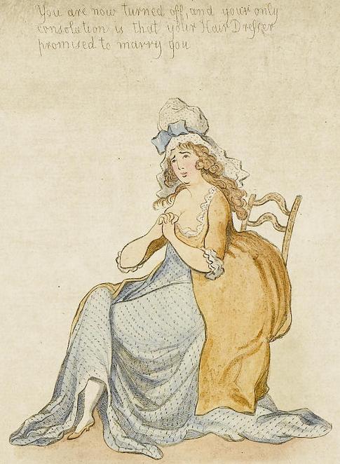 Due to her inability to hold her temper, our lady’s downhill slide is guaranteed. Richard Newton was known for his drawings of bare-breasted ladies. It could not have been hard to tug a woman’s chemise down over her bosom in those days.