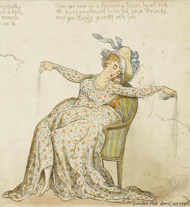 You are now in a Sponging House, heart sick at disappointment from all your Friends, and you stupefy yourself with Gin.