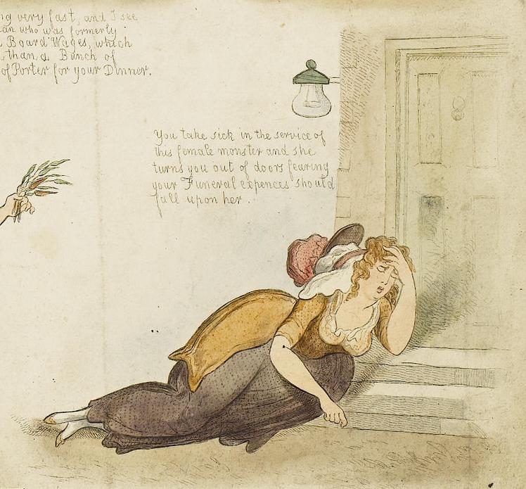 You take sick in the service of this female monster and she turns you out of doors fearing your Funeral expenses should fall upon her.