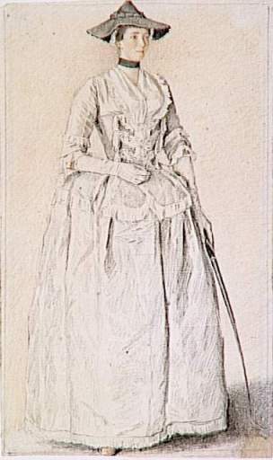 Our whole town was soon alarmed with this strange appearance, and various are still the opinions what it really was. The old people, who were the most couragious generally, went pretty near to it with their spectacles on to view it more distinctly; the younger sort kept it at an awful distance. Some were of opinion that it was a highwayman in disguise, and accordingly were for seizing it; others took it for a nun; but by a certain arch leer it had with its eyes I dare engage it had not a bit of nun’s flesh about it. However, by its pale complexion and shroud-like dress, most of my neighbours at last concluded it to be a ghost, and so took to their heels, and left me (who am no great believer in these things) almost alone with it in the road. I had now an opportunity, during the time it was drinking a glass of Rhenish wine and sugar at the Saracen’s Head Inn, to survey it well, and thereupon concluding it to be an Hermaphrodite, I enquired of the man who seemed to have the keeping of it, if he intended to show it in our town, and at what inn? For you must know, Sir, that I have a mighty curiosity to see one of those creatures all over. But the man with an angry countenance told me: That what I took for an Hermaphrodite was only a young lady, and that the sort of dress she was in was commonly worn for a riding-habit by the ladies of fashion at London. But as neither I nor my neighbours can believe it possible for folks upon no ill design to disguise themselves in such a manner… – A history of English dress from the Saxon period to the present day, Volume 2 (Google eBook)R. Bentley, 1893