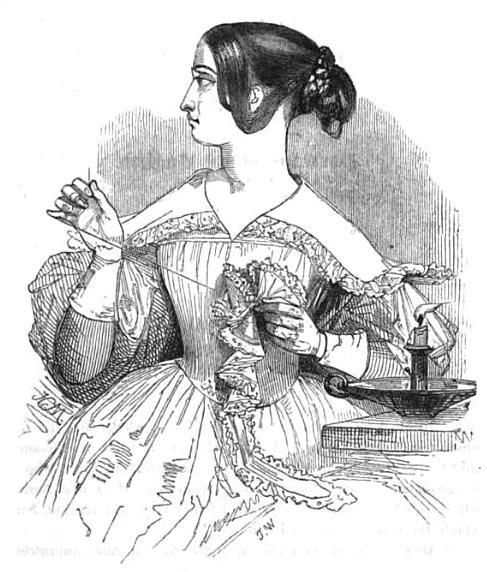 Imagine that it is the Season in London and young ladies and their mamas are ordering dresses by the dozens for balls and visits. In an age when all sewing and embroidery were done by hand, when lighting was poor and wages were so low that they barely paid for room and board, pity the poor seamstress hunched over her sewing assignments, racing against time to meet a series of deadlines that seem endless, and complying with the exacting standards of a boss and clients who cared not a whit for her comfort.