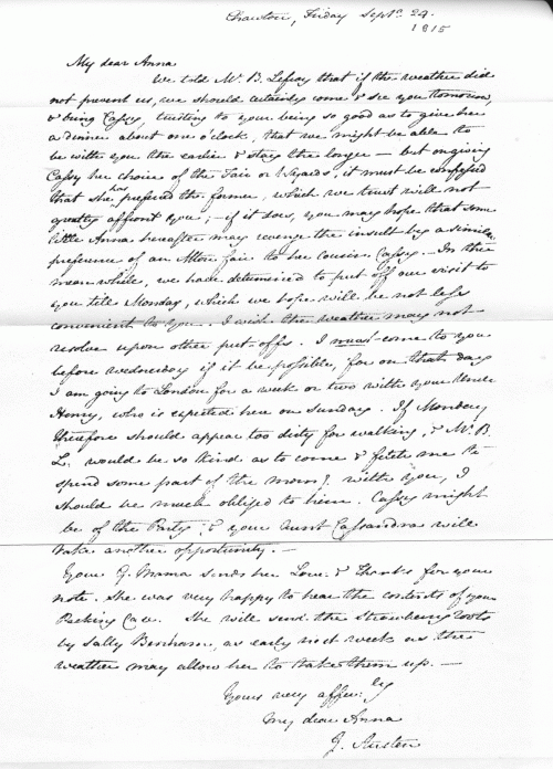 “ We had a little water party yesterday; I and my two nephews went from the Itchen Ferry up to Northam, where we landed, looked into the 74, and walked home, and it was so much enjoyed that I intend to take them to Netley today; the tide is just right for our going immediately after noonshine but I am afraid there will be rain.”